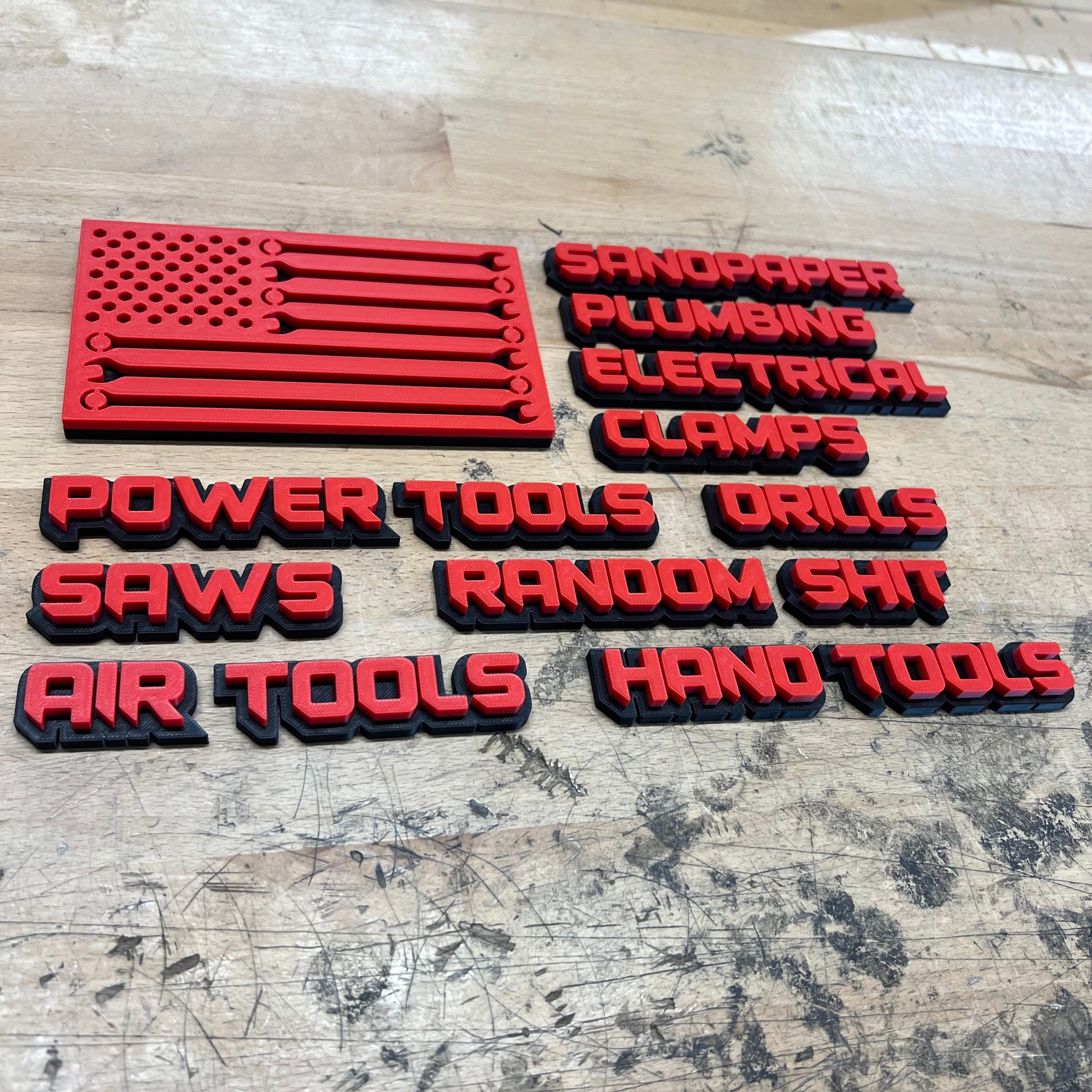 Our Sharp Font Father's Day Bundle #2! These bold badges help organize your space without ruining the look of your shop.